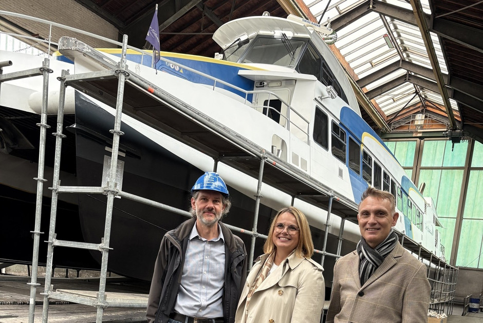 Sauber, effizient, nachhaltig – die Vorteile der neuartigen Rumpfbeschichtung von Katamaran „Ferdinand“ liegen auf der Hand. Statt wie bisher alle zwei Jahre die alte Rumpfbeschichtungen abzutragen und eine neue aufzubringen, reicht künftig eine Reinigung – mit Hochdruckreiniger oder sogar robotergestützt direkt im Wasser. „Die neue Beschichtung spart uns den bisher alle zwei Jahren anfallenden Aufwand in Höhe von rund 30.000 Euro und steigert zugleich die Effizienz von Kat ‚Ferdinand‘“, erklärt Reederei-Geschäftsführer Christoph Witte. Denn auch technisch bietet das Verfahren Vorteile: saubere, glatte Rümpfe reduzieren den Reibungswiderstand, senken den Kraftstoffverbrauch und verbessern die Wirtschaftlichkeit. Magdalena Linnig, Geschäftsführerin der Reederei, erklärt wieso: „Die neue Beschichtung sorgt für weniger Wartung, weniger Stillstand und damit unterm Strich für weniger Kosten. All das zahlt direkt auf die Effizienz unserer Flotte ein und entlastet zugleich unsere Technik-Crew.“